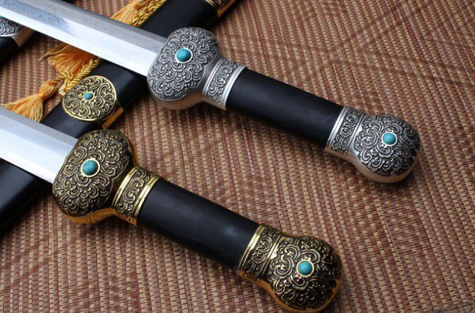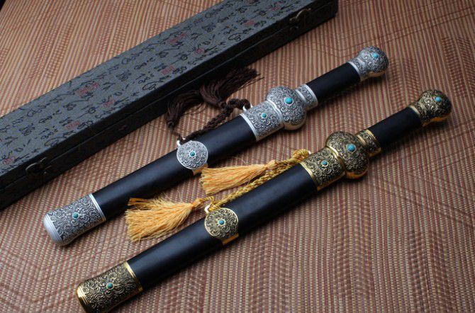 12寸金兰剑(镀金、镀银) 【规格】全长:53.3cm左右,刃长:30cm,柄长:19.5cm,刃宽:3.5cm,刃厚:0.9cm 【刃材】花纹钢手工打造 【工艺】花纹钢手工打造 古法热处理 手工精细磨 【鞘材】名贵檀木 【装具】银装 【硬度】57 HRC 【柄材】名贵檀木 【赠品】锦盒 【其他】手工产品,稍有差别,请以实物为准