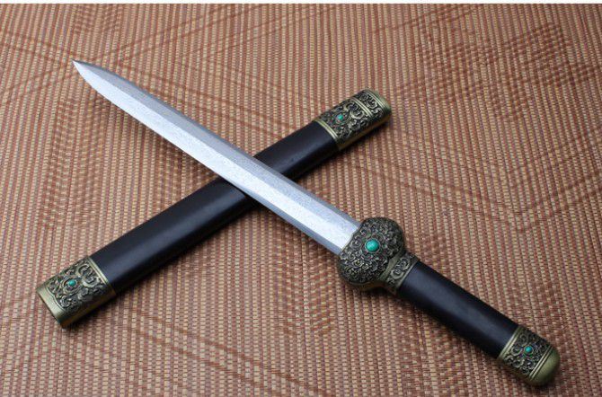 【规格】 全长:50.3cm左右,刃长:29.5cm,柄长:18.0cm,刃宽:3.3cm,刃厚:0.9cm 【刃材】 花纹钢手工打造 【工艺】 花纹钢手工打造 古法热处理 手工精细磨 【鞘材】 名贵檀木 【装具】 铜装 【硬度】 57 HRC 【柄材】 名贵檀木 【赠品】 锦盒 【其他】 手工产品,稍有差别,请以实物为准