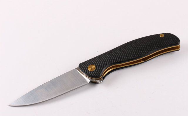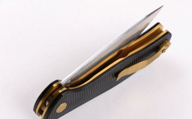 全 长:222mm 刃 长:101mm 柄 长:126mm 刃 宽:28mm 刃 厚:4.0mm 刃 材:8CR 17MOV 重 量:300g (含包装物) 硬 度:58-60HRC 表 面:精细沙光 柄 材:手柄全钢镀钛金 刀 夹:加固全钢夹 锁 型:线锁 螺 丝:所有螺丝420不锈钢硬度HRC45,全CNC精雕加工 结 构:线锁结构、锁刀接触镶嵌合金粒、陶瓷定位珠、内置平面滚针轴承垫片 其 他:黑色礼品合