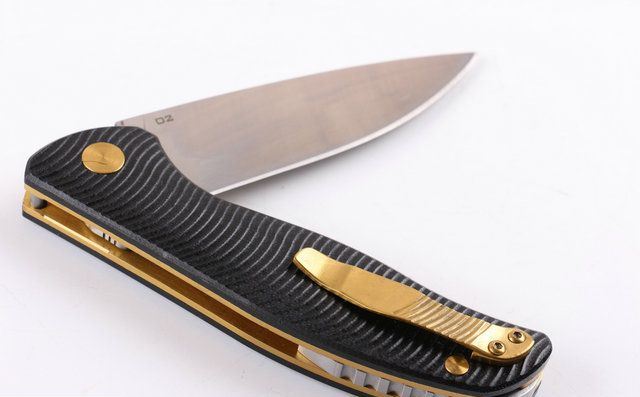 熊头95土豪版折刀 全 长:222mm 刃 长:101mm 柄 长:126mm 刃 宽:28mm 刃 厚:4.0mm 刃 材:8CR 17MOV 重 量:300g (含包装物) 硬 度:58-60HRC 表 面:精细沙光 柄 材:手柄全钢镀钛金 刀 夹:加固全钢夹 锁 型:线锁 螺 丝:所有螺丝420不锈钢硬度HRC45,全CNC精雕加工 结 构:线锁结构、锁刀接触镶嵌合金粒、陶瓷定位珠、内置平面滚针轴承垫片 其 他:黑色礼品合