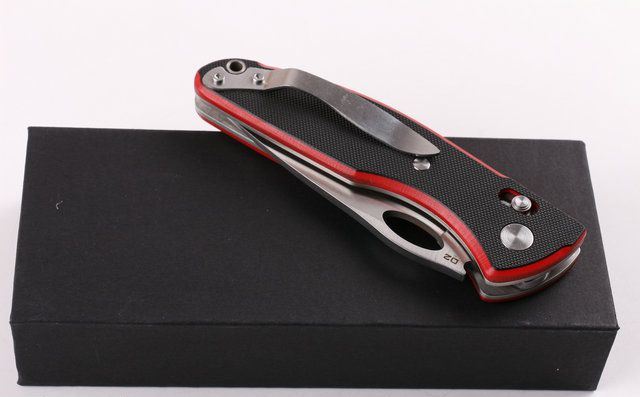 全 长: 22.2cm 刃 长: 8.8cm 刃 宽: 3.2cm(最宽处) 闭 合: 12.9cm(柄长) 刃 材: 5CR15 硬 度: 57 表 面: 微细拉丝 刃 厚: 0.39cm 柄 材: 双色G10 净 重: 300克 包 装: 原装礼品盒 锁 闭: 轴锁