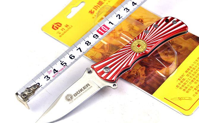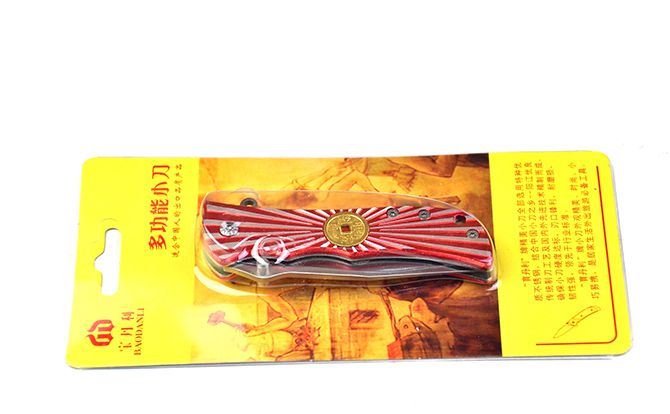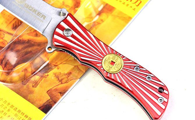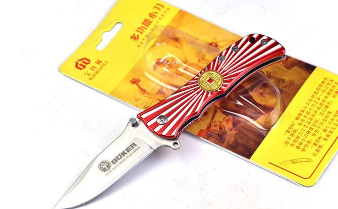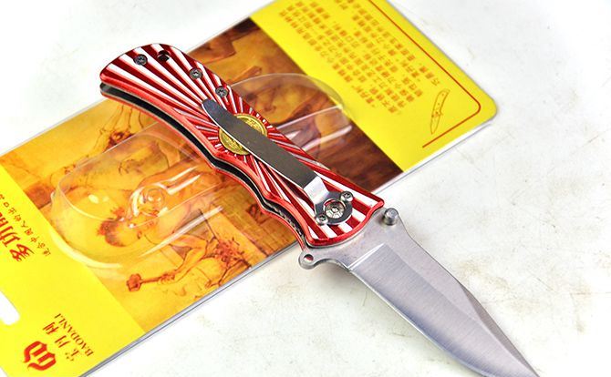 博克万流折刀 全 长:16cm 刃 长:6.5cm 柄 长:9cm 刃 宽:3cm 刃 厚:2.1mm 刃 材:5Cr13Mov 重 量:80g(含包装) 硬 度:58HRC 表 面:砂光 柄 材:合金铝片雕花 锁 型:线锁 包 装:插卡包装 备 注:带腰夹