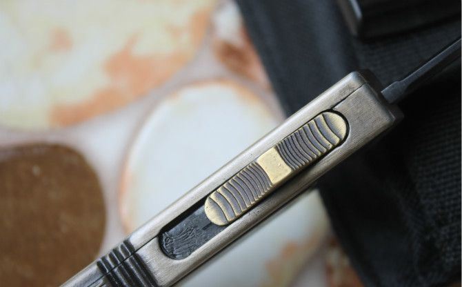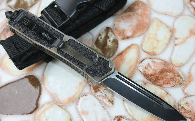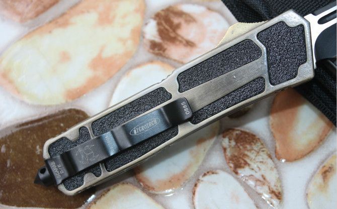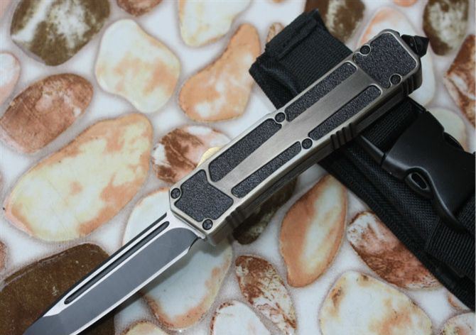 微技术圣甲虫单锋平头直跳(金色) 开启长度:22CM 合起长度:13.5CM 刃 厚:0.4CM 硬 度:57 HRC 刃 材:440c 表 面:氧化黑 把 手:航空铝合金+钢砂 净 重:200克(整刀) 毛 重:280克(含包装物) 开 合:双动作, 直推开关,自动弹出和收回(刀头比较牢固,只有很轻微的摇动) 包 装:耐磨专用战术尼龙套 口袋刀夹:弹簧刀夹 玻璃敲击器:钨质玻璃敲击器