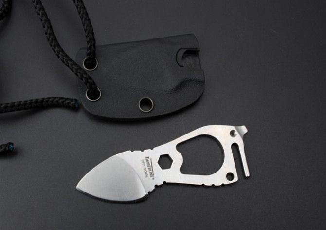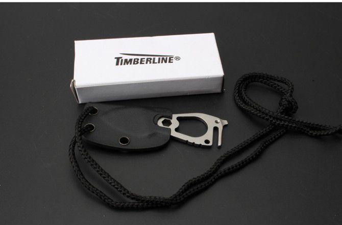 美国Timberline指环颈刀 全 长:8.5cm 刃 长: 4.1cm 刃 厚: 3mm 刃 材: 440C 硬 度: 58HRC 刀 重: 47g含包装 表 面: 拉丝 柄 材: 全钢 刀 鞘:进口K鞘 整把刀线切割,CNC加工型成,质量,手工非常完美。此刀非常锋利,把玩要小心