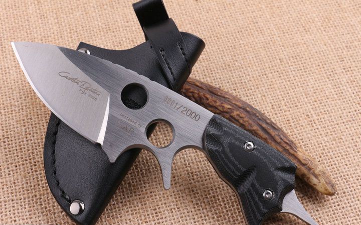 全长:18.5cm 刃长:11.0cm 柄长:8cm 刃厚:0.63cm 刃宽:4.5cm 刃材:D2 柄材:G10 硬度:58HRC 净重:260克(含包装) 锁定:直锁 表面处:沙光伴拉丝 其他:优质真皮套和礼品盒装,每把刀都有一个不同的生产流水号