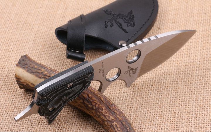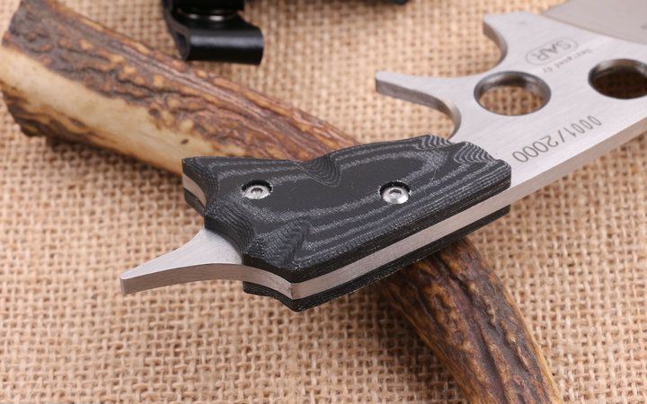 德国-波尔警备 全长:18.5cm 刃长:11.0cm 柄长:8cm 刃厚:0.63cm 刃宽:4.5cm 刃材:D2 柄材:G10 硬度:58HRC 净重:260克(含包装) 锁定:直锁 表面处:沙光伴拉丝 其他:优质真皮套和礼品盒装,每把刀都有一个不同的生产流水号