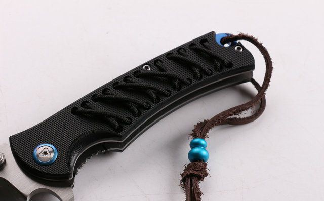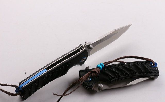 全 长:200mm 刃 长:87mm 柄 长:113mm 刃 宽:28mm 刃 厚:4.0mm 刃 材:9CR18MOV 重 量:150g(含包装) 硬 度:57HRC 表 面:沙光伴拉丝 柄 材:全钢+G10穿黑绳子 锁 型:线锁 其 他:配厂盒