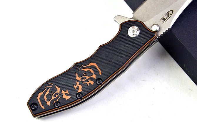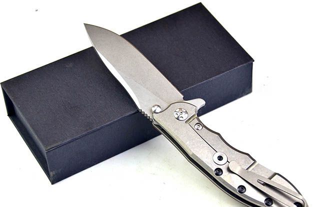 ZT零误差花样年华折刀 全 长:21.5cm 刃 长:9.0cm 柄 长:12.2cm 刃 宽:3.2cm(最宽处) 刃 厚:4.5mm 刃 材:D2高速钢 硬 度:60-62HRC 刀 柄:TC4钛合金(表面经石洗处理),加彩色G-10 表 面:灰钛 锁 式:侧锁 重 量:220克(含包装物) 备 注:钛合金背夹