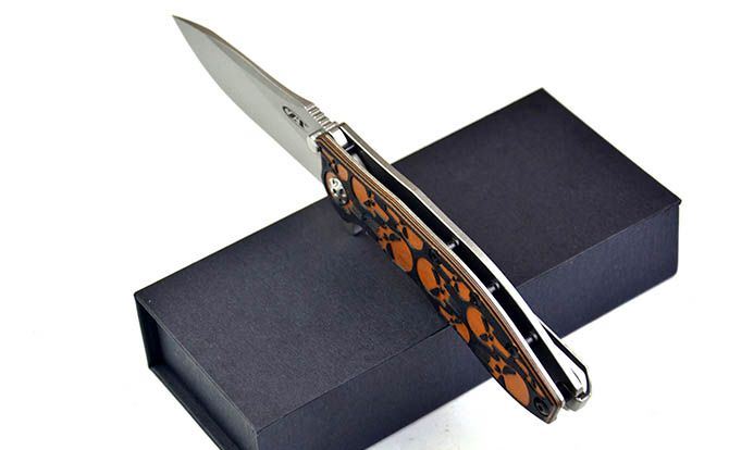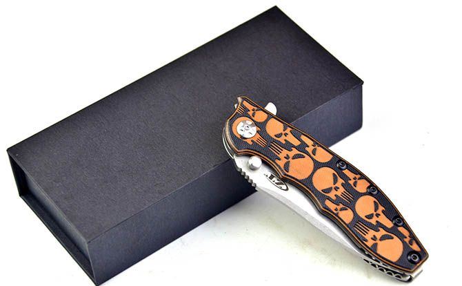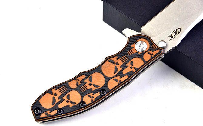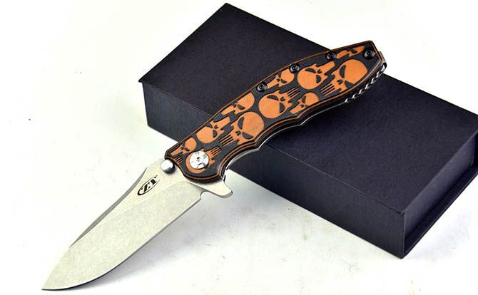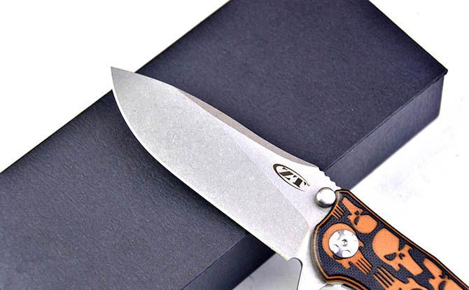 ZT零误差骷髅头版折刀 全 长:21.5cm 刃 长:9.0cm 柄 长:12.2cm 刃 宽:3.2cm(最宽处) 刃 厚:4.5mm 刃 材:D2高速钢 硬 度:60-62HRC 刀 柄:TC4钛合金(表面经石洗处理),加彩色G-10 表 面:灰钛 锁 式:侧锁 重 量:220克(含包装物) 备 注:钛合金背夹