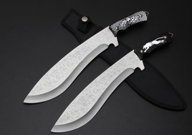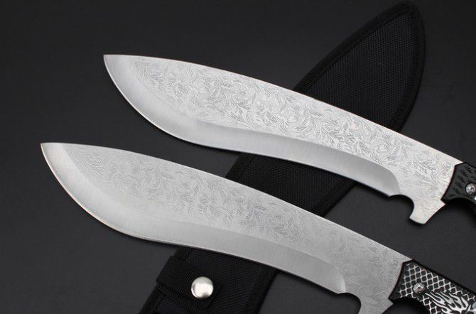 海豹AG花纹狗腿 全 长:373mm 刃 长:260mm 柄 长:115mm 刃 宽:55mm 刃 厚:4.1mm 刃 材:7Cr13Mov 重 量:492g(含包装) 硬 度:56HRC 表 面:腐蚀纹 柄 材:一体钢+铝柄 锁 型:定锁 其 他:配黑色牛津套