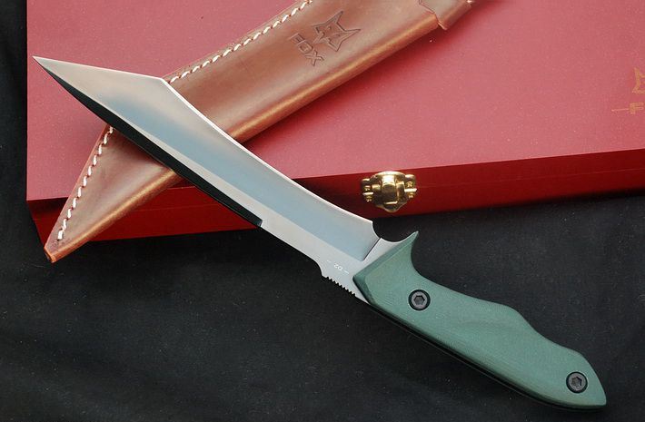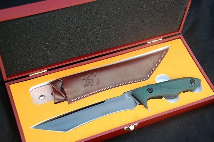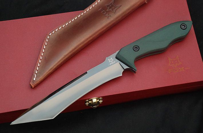 千年狐狸灰钛版 全长:30CM 刃长:18.5CM 柄长: 11.5CM 刃材:D2 硬度: 59HRC 刃厚: 0.59CM 刃宽:3.3CM (最宽处) 涂层:灰钛 柄材: G10 刀鞘:皮套(配木盒) 重量:900g(含包装)