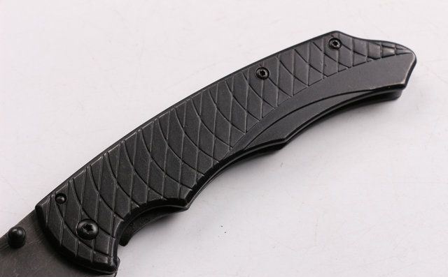 SR529D折刀(黑色) 全 长:218mm 刃 长:98mm 柄 长:122mm 刃 宽:28mm 刃 厚:2.8mm 刃 材:440 重 量:150g(含包装) 硬 度:57HRC 表 面:腐蚀纹 柄 材:全钢 锁 型:线锁 其 他:配厂盒 +优质尼套