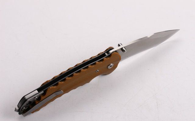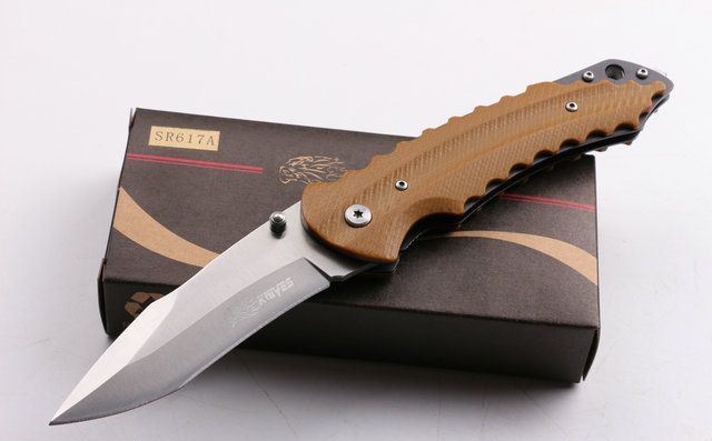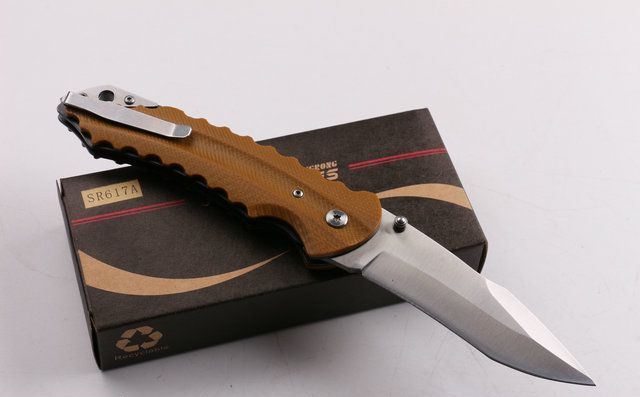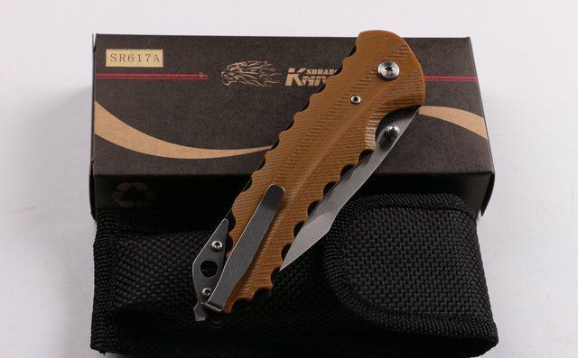SR617A折刀(咖啡柄) 全 长:222mm 刃 长:92mm 柄 长:130mm 刃 宽:26mm 刃 厚:2.8mm 刃 材:440 重 量:150g(含包装) 硬 度:57HRC 表 面:沙光 柄 材:全钢 锁 型:线锁 其 他:配厂盒 +优质尼套