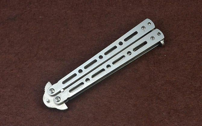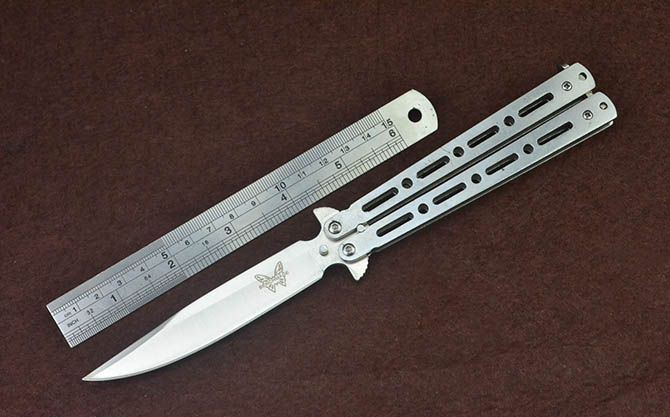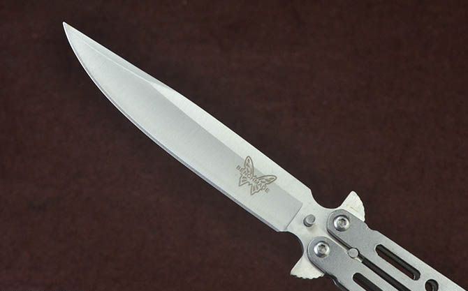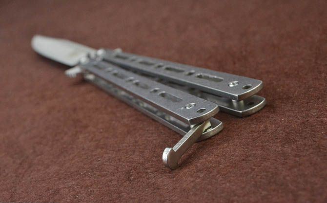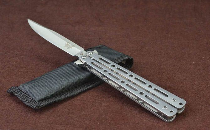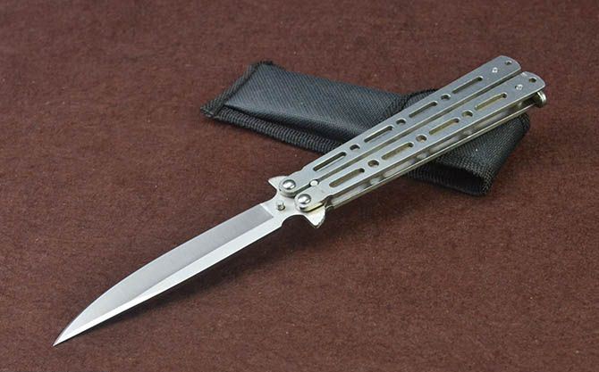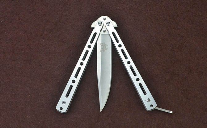 蝴蝶ZCG全钢甩刀 全 长:22.7cm 刃 长:9.7cm 柄 长:12.3cm 刃 宽:1.7cm 刃 厚:2.3mm 刃 材:420不锈钢 重 量:118g(含包装) 硬 度:52HRC 表 面:砂光 柄 材:钢柄
