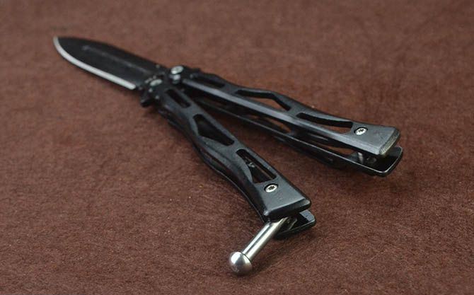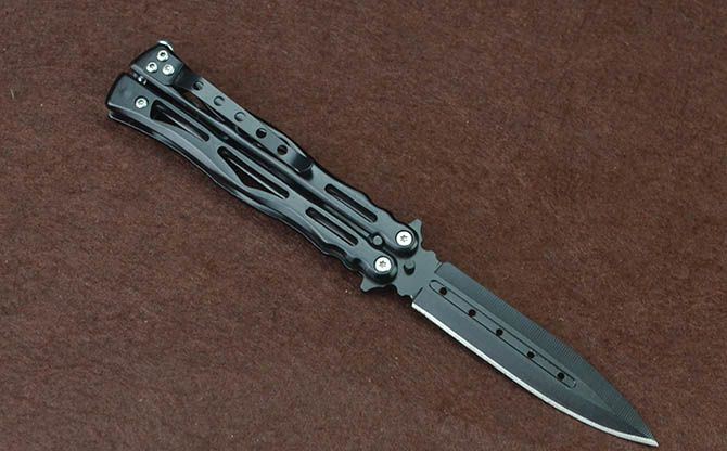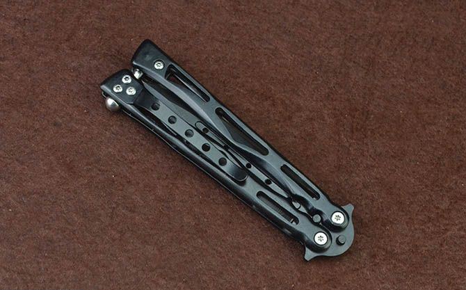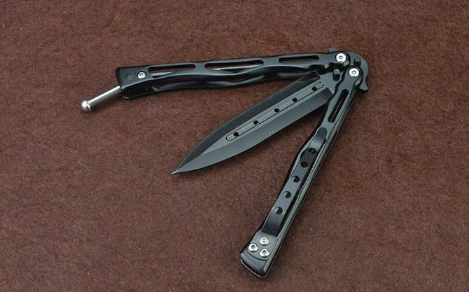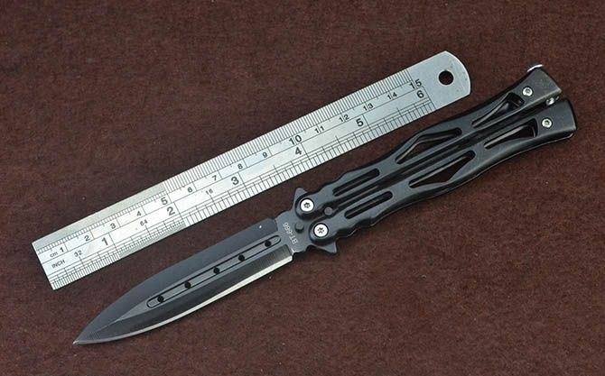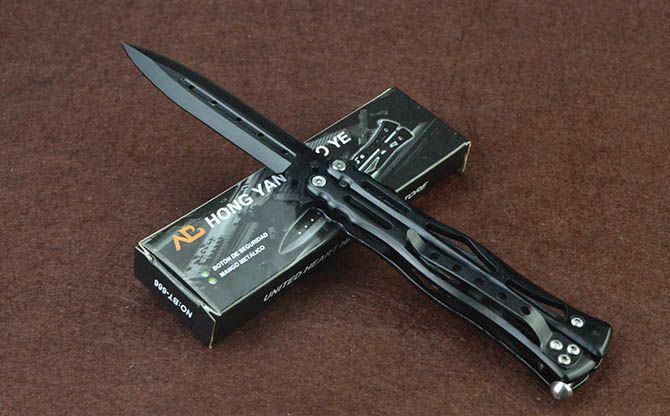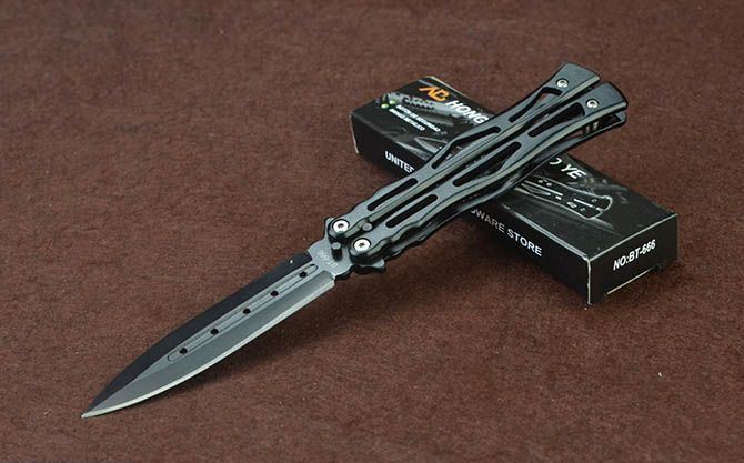 BT古战鹰黑蝴蝶甩刀 全 长:19.3cm 刃 长:8cm 柄 长:10.5cm 刃 宽:1.7cm 刃 厚:2.7mm 刃 材:3Cr13Mov 重 量:102g(含包装) 硬 度:56HRC 表 面:发黑 柄 材:发黑 锁 型:甩刀 其 他:配彩盒