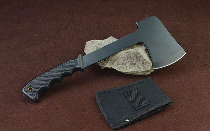 FOSCO福斯科小手斧 全 长:29.5cm 刃 长:7cm 柄 长:12.5cm 刃 宽:10.2cm 刃 厚:3.7mm 刃 材:3Cr13 重 量:358g 硬 度:57HRC 表 面:氧化黑 柄 材:橡塑柄,手感舒适 其 他:配尼龙套