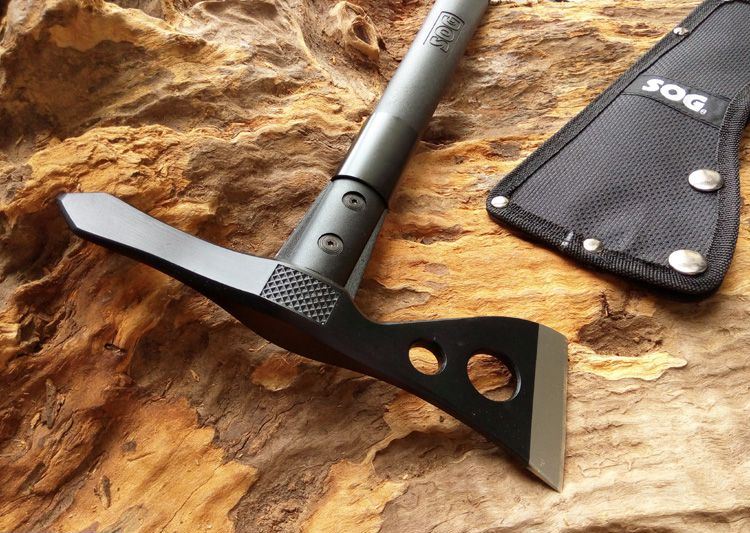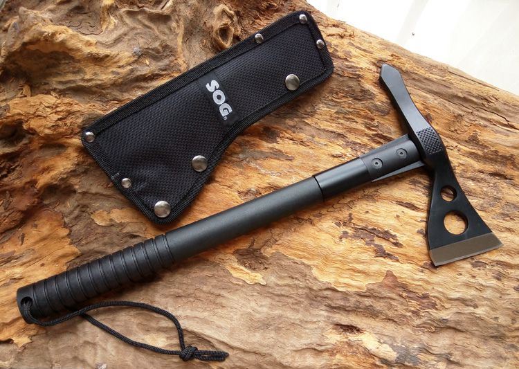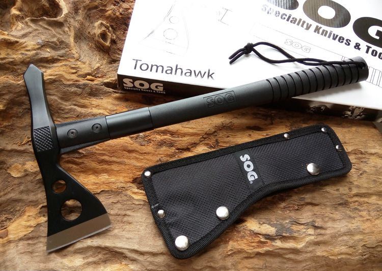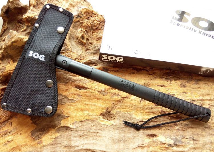 SOG玻璃纤维塑料手柄手斧 全 长:40cm 刃 长:6.5cm 柄 长:37.5cm 刃 宽:20cm 刃 厚:6.8mm 刃 材:7Cr17 一体钢 重 量:0.96Kg(含包装) 硬 度:58HRC 表 面:氧化黑 柄 材:玻璃纤维塑料 其 他:配尼龙套和彩盒