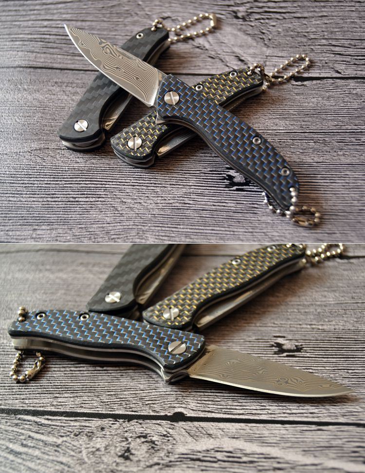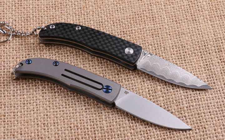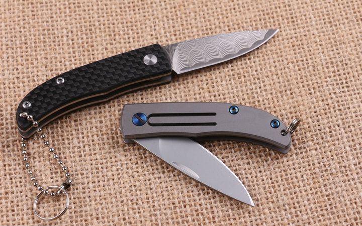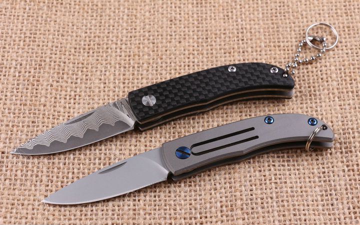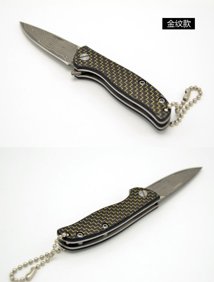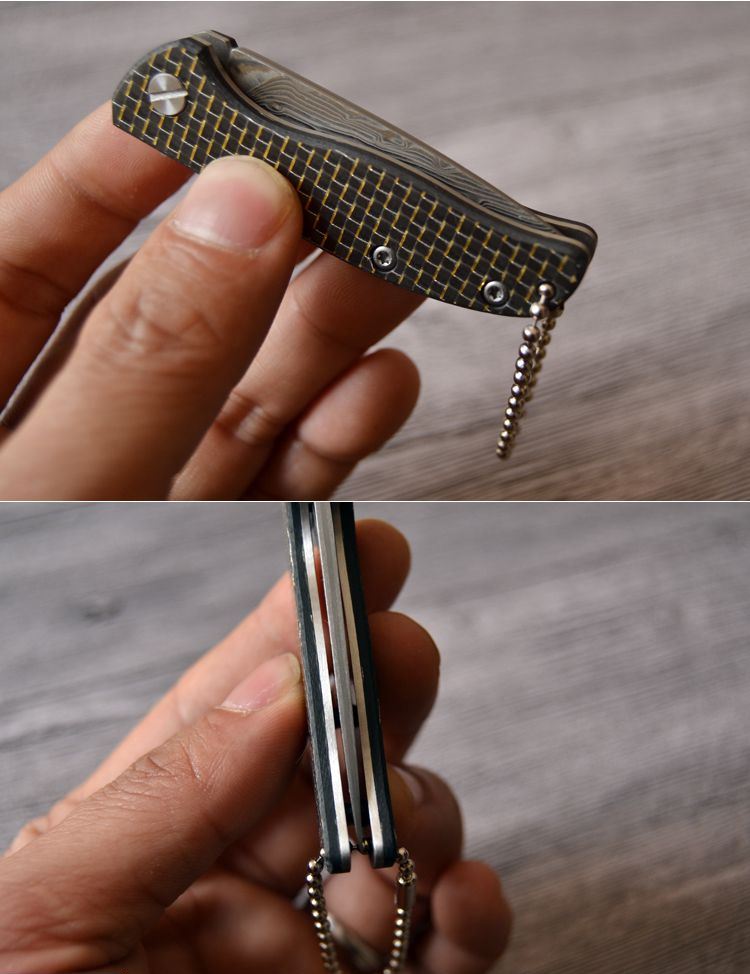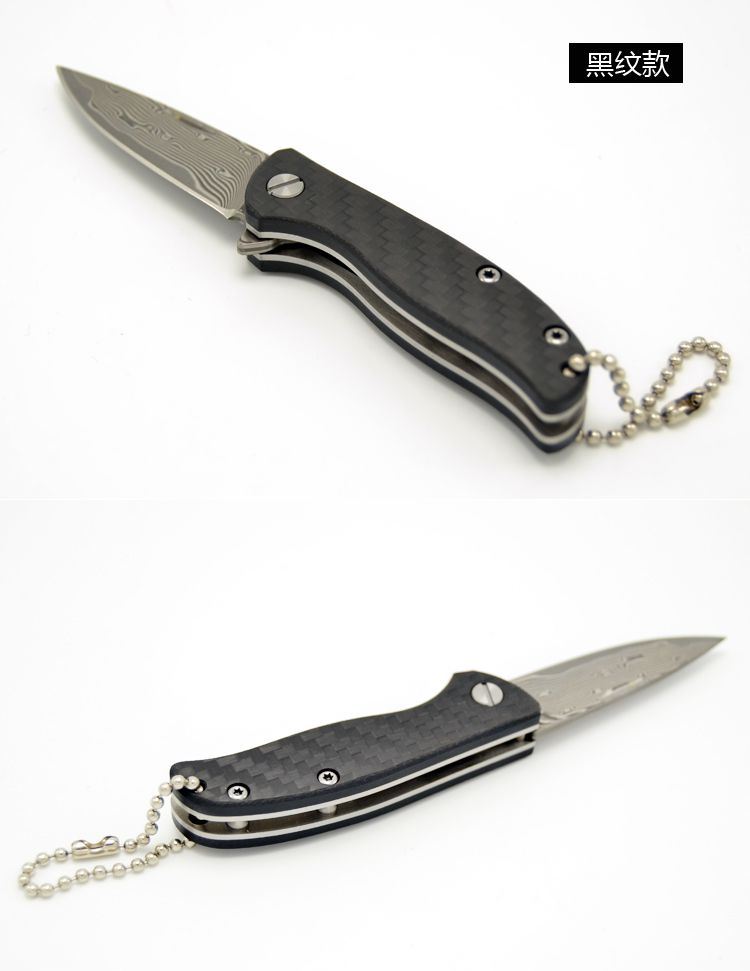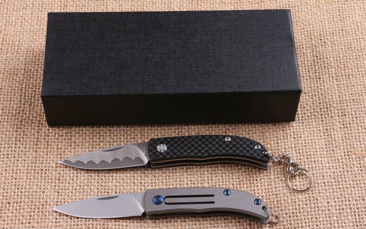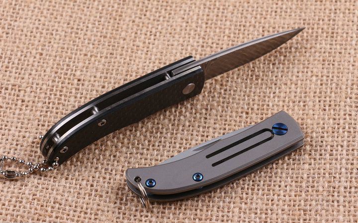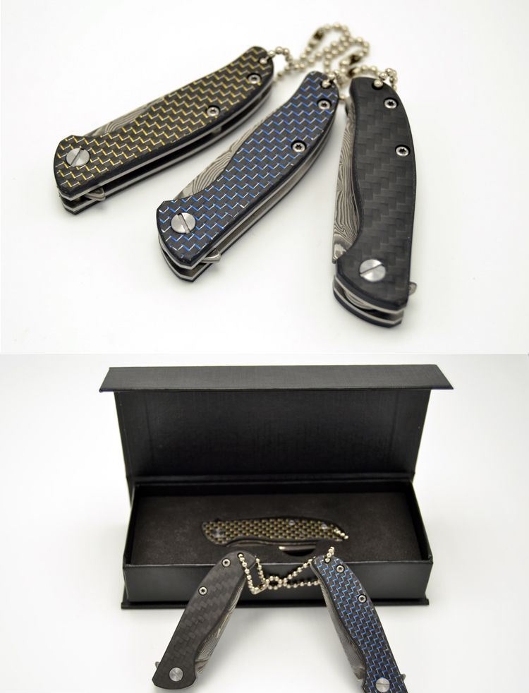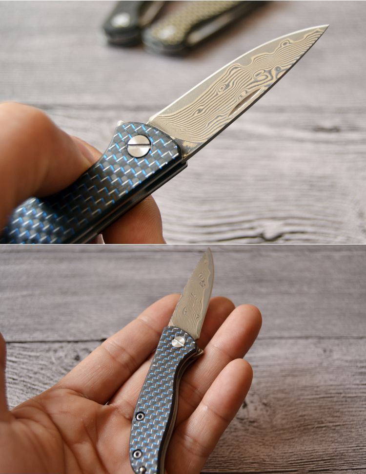 SW03迷你钛合金柄大马士革小刀 总 长:122mm 刃 长:52mm 柄 长:70mm 刃 厚:2.4mm 刃 材:进口大马士革 柄 材:碳纤维 硬 度:58-59HRC 锁 定:无锁 重 量:100克(含包装) 包 装:原厂礼品盒