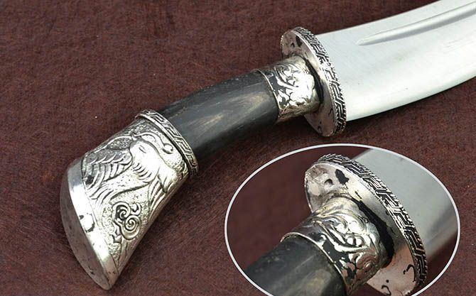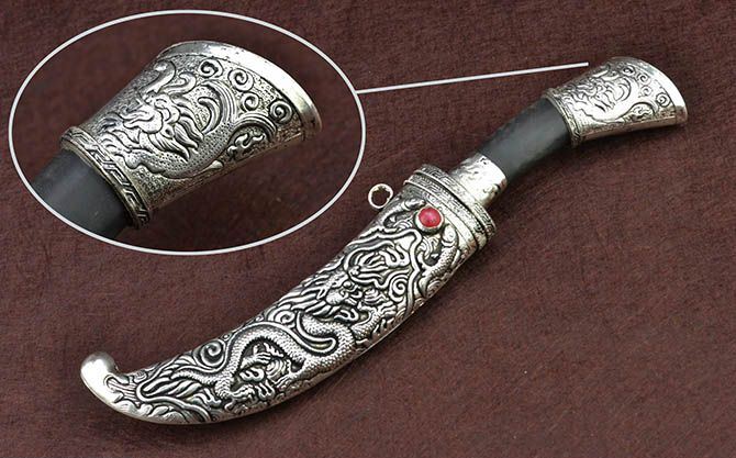 鞘材:采用藏银纯手工制做,内装木芯以保护刀刃。