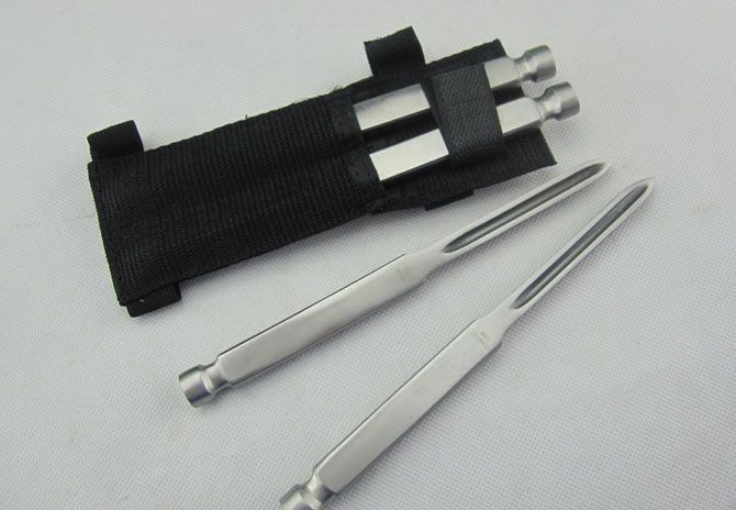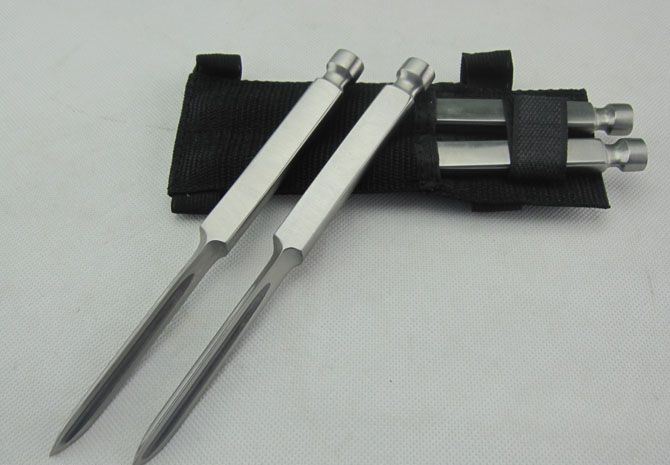 总长:17.8CM 材料:一体不锈钢 重量:75克(一支) 全钢压铸一次成型 两支套装 三棱小刃,三血槽,配有的刀鞘很方便绑在胳膊上和腿上,全不锈钢制造