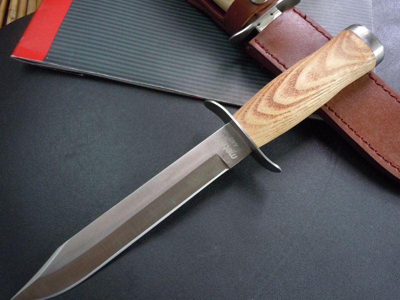 Metero飞星战术短刀(一体刃) 全长:27CM 刃长:16CM 刃厚:0.4CM 柄长:11CM 刃材:440 柄材:桦木 刀鞘:牛皮 波兰Metero(流星)战术短刀,一体刃柄结构,桦木圆柄,钢护手,简单实用,440锋刃,出口尾货