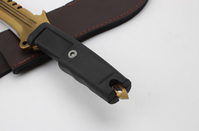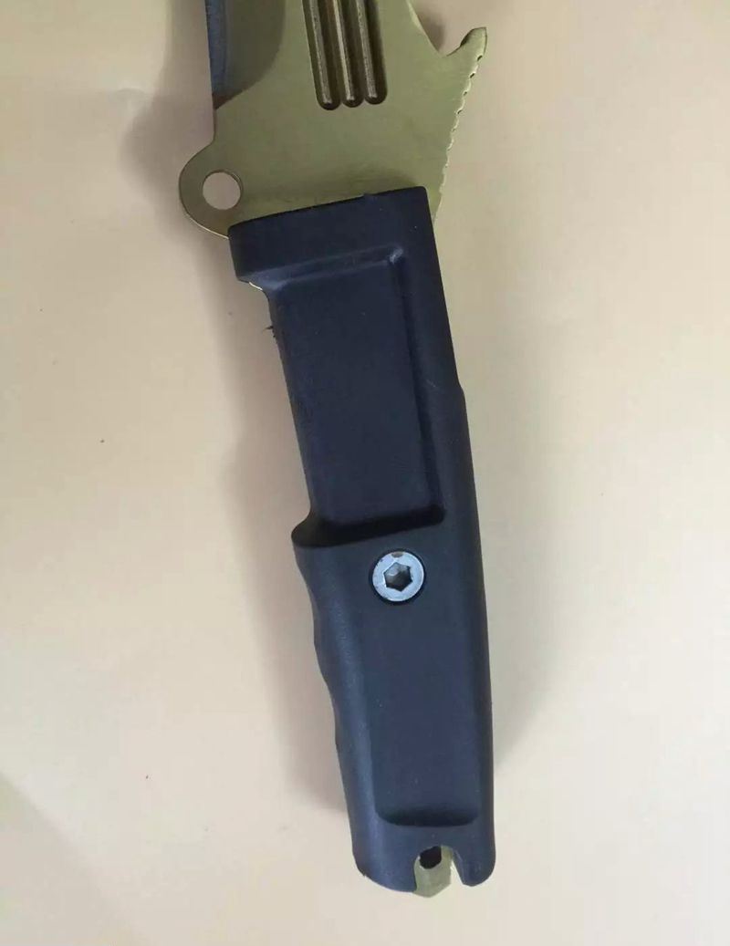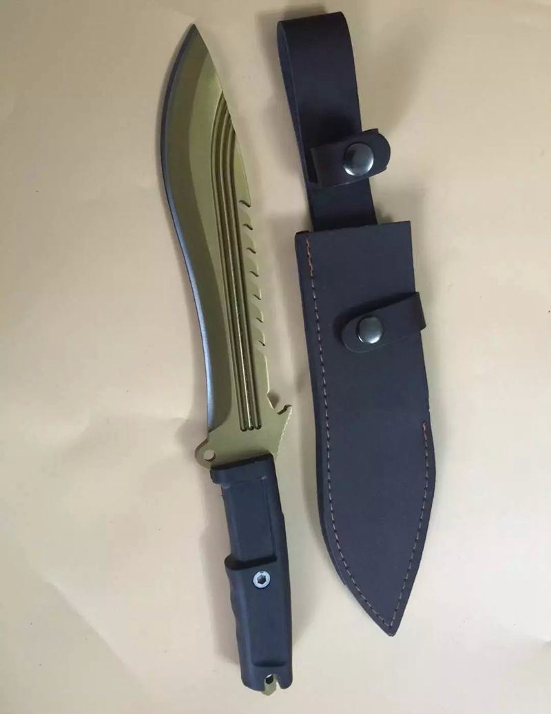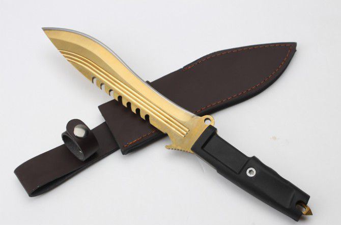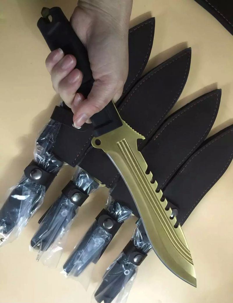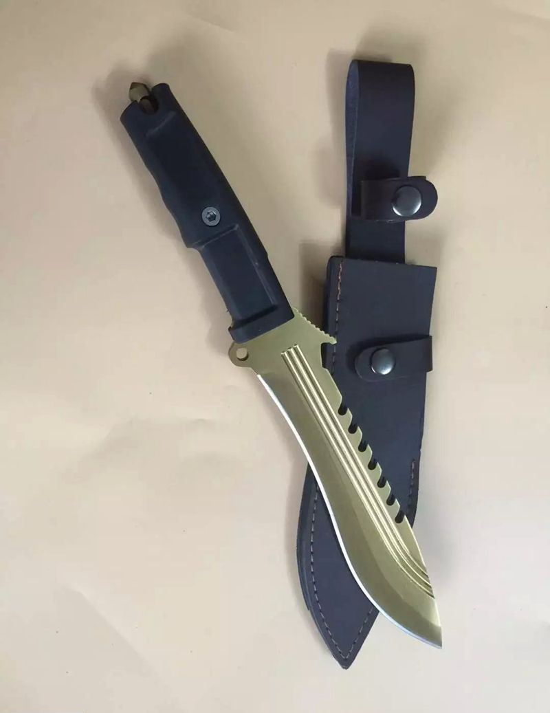 全 长:350mm 刃 长:22m 柄 长:136m 刃 宽:40 刃 厚:6mm 刃 材:7Cr17Mov 重 量:485克 硬 度:58HRC 表 面:镀金色 柄 材:龙骨结构+橡胶