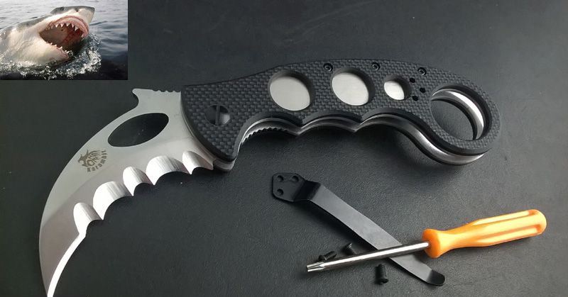 THE ONE超爱大白鲨爪刀 全长:17.3CM 折叠:13CM(护手处) 刃长:6(弧度直线量) 硬度:58-60(真空热处理) 表面:石洗 刃材:AUS-8 重量 135g THE ONE轻爪飞扬为各爪玩带来回归经典折叠爪之作-超爱大白鲨款,略微显胖的刃型,双环,完美的中心配比,一脉相承的妥帖手感,绝对是爪玩们2014年最值得入手的爪型 极具吸引力的爪型,犹如修罗手中惩罚之镰,独特镰刀式单面磨刃,大白鲨齿形棘齿型防滑螺丝,锁定等细节都匠心打造,这款经典中的精品会是您的THE ONE吗
