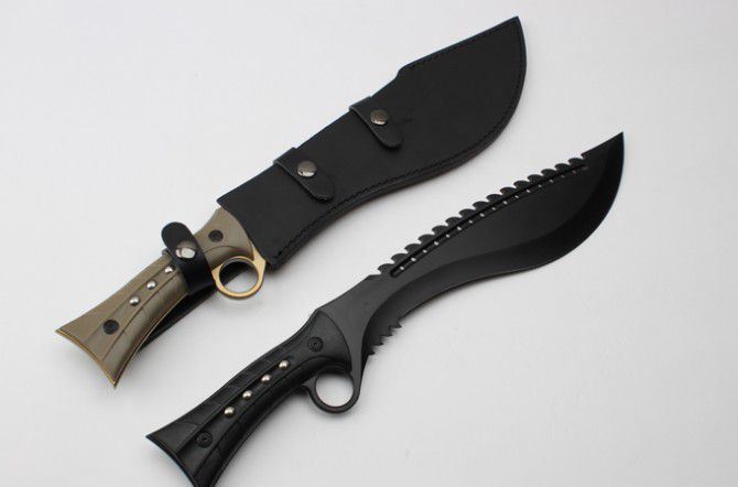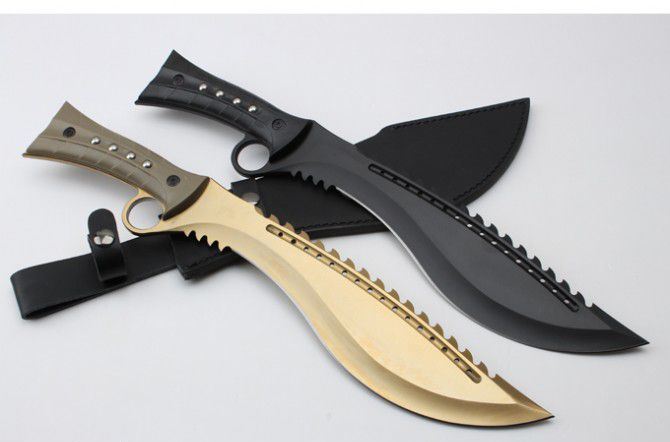 全 长:44.8mm 刃 长:299mm 柄 长:147mm 刃 宽:6.8mm 刃 厚:4.1mm 刃 材:7Cr17Mov 重 量:967g(含包装) 硬 度:57HRC 表 面:黑钛-金色 柄 材:ABS 锁 型:定锁 其 他:配尼套和硬纸盒