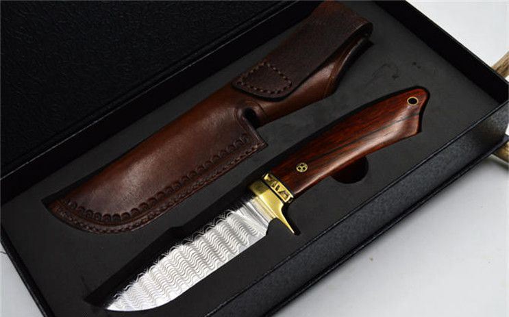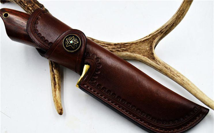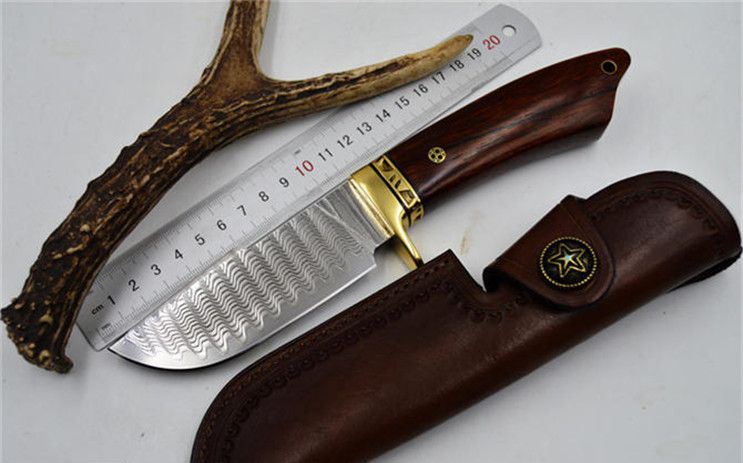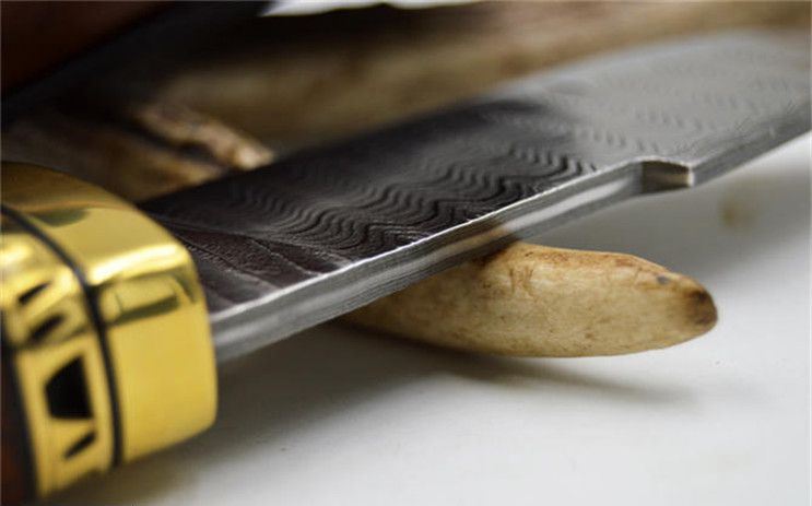 全长:22.8CM 刃长:9.9CM 刃宽:3.5CM(最宽处) 刃厚:0.4CM 刀刃硬度:58-60HRC(VG-10芯层) 刃材:夹钢大马士革钢(VG-10芯层) 柄材:黄铜+微凹黄檀 包装:手工雕花皮套+礼盒 刀刃采用进口VG_10层大马士革钢,经真空热处理后硬度可达58至60HRC,达到超强的锋利度,刮毛,一刀过水瓶不在话下。配置意大利A级植鞣革雕刻手工牛皮套,厚实,高档。确保每位刀友收到都是高品质大马士革钢刀。