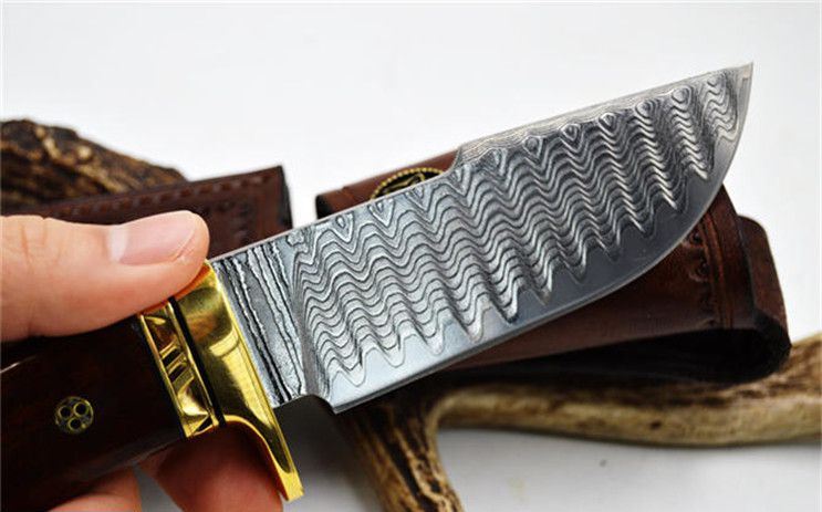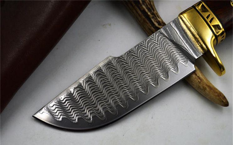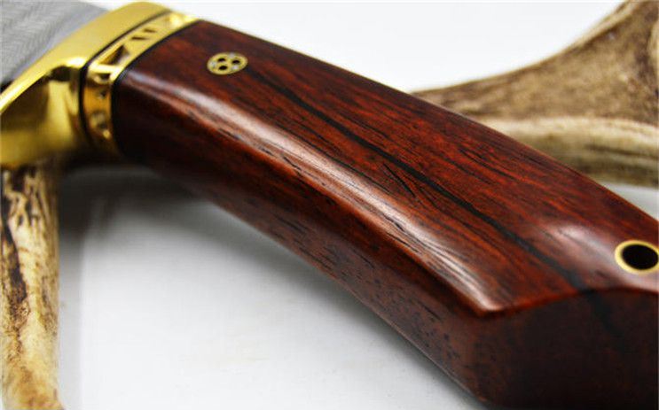 大马士革隼猎刀 全长:22.8CM 刃长:9.9CM 刃宽:3.5CM(最宽处) 刃厚:0.4CM 刀刃硬度:58-60HRC(VG-10芯层) 刃材:夹钢大马士革钢(VG-10芯层) 柄材:黄铜+微凹黄檀 包装:手工雕花皮套+礼盒 刀刃采用进口VG_10层大马士革钢,经真空热处理后硬度可达58至60HRC,达到超强的锋利度,刮毛,一刀过水瓶不在话下。配置意大利A级植鞣革雕刻手工牛皮套,厚实,高档。确保每位刀友收到都是高品质大马士革钢刀。