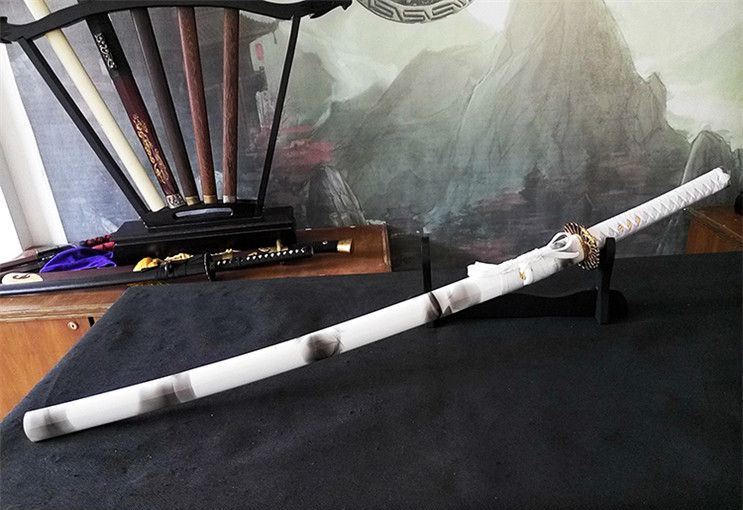 全长:102cm 柄长:26cm 刃长:72cm 刃宽:3.2cm 刃厚:0.7cm 材质:高锰钢 柄材:原木 硬度:60 重量:1400g 包装:高档锦盒