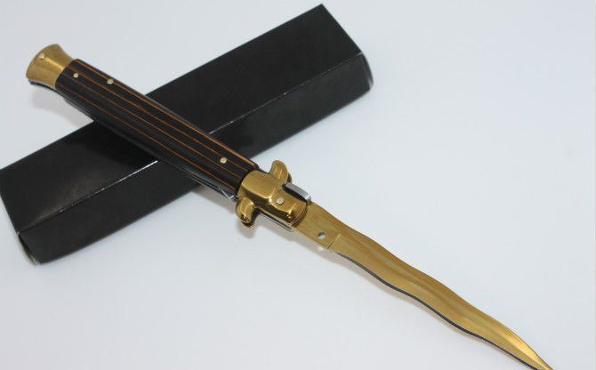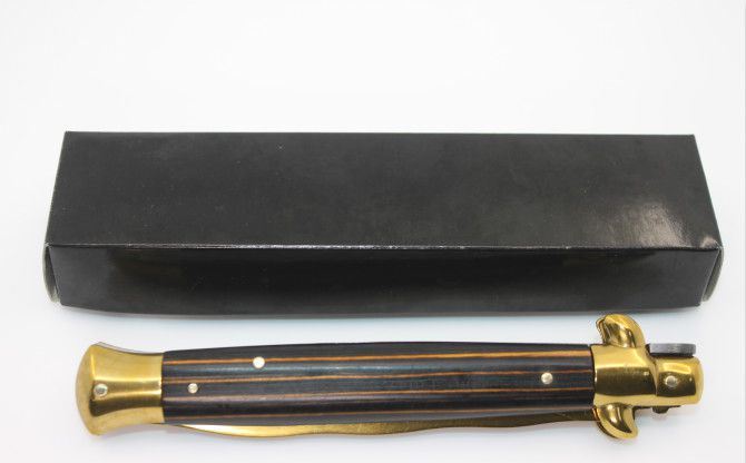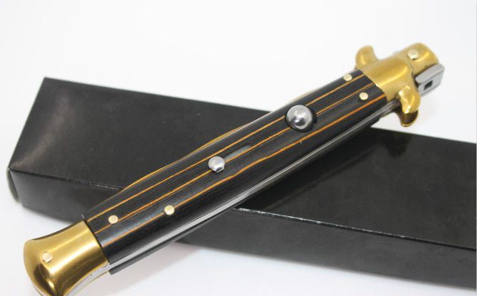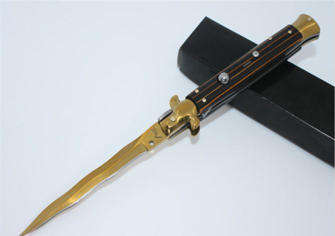 11寸意大利AKC古典跳刀黑手蛇刃(金刃条纹彩木柄)
