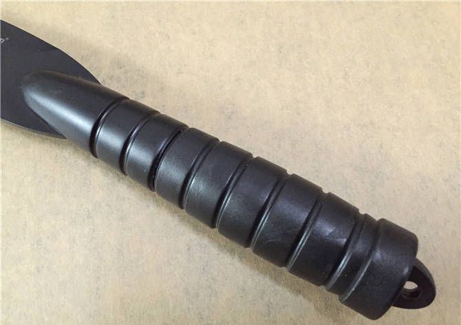 全长:27.5cm 刃长:11.4cm 柄长:12.5cm 刃厚:4mm 刃宽:3.8cm 刃材:440 柄材:G10 硬度:56Hrc 重量:375克 表面:黑色 刀套:尼龙套