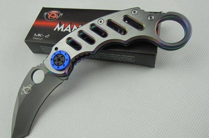 月牙爪刀(T头) 全 长:16.4cm 刃 长:6.3cm 柄 长:11.5cm 刃 宽:2.7cm(最宽处) 刃 厚:2.8mm 刃 材:440C 硬 度:57HRC 刀 柄:钢柄 表 面:镀钛 锁定方式:线锁 重 量:100.0克 备 注:带背夹