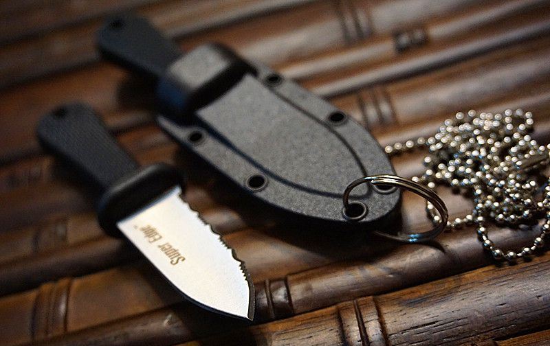 冷钢便携项链小刀 全 长:10.95 cm 刀 长:5 cm 刃 材:5cr13 硬 度:58HRC 刃 厚:2mm 表 面:珠光处理 刀 鞘:ABS材质 柄 材:橡胶 重 量:23g