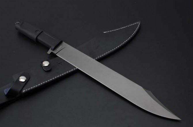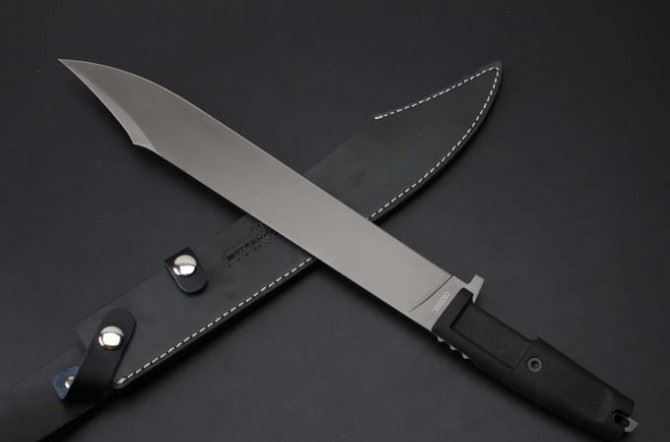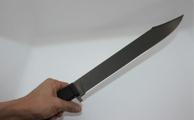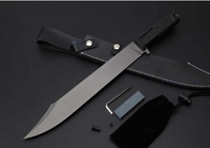 极端武力圣殿砍刀 全 长:450mm 刃 长:318mm 柄 长:128mm 刃 宽:44mm 刃 厚:6mm 刃 材:7Cr13Mov 重 量:844g(含包装) 硬 度:56HRC 表 面:镀灰钛 柄 材:ABS注塑 锁 型:定锁 其 他:硬纸盒+皮套 +配件
