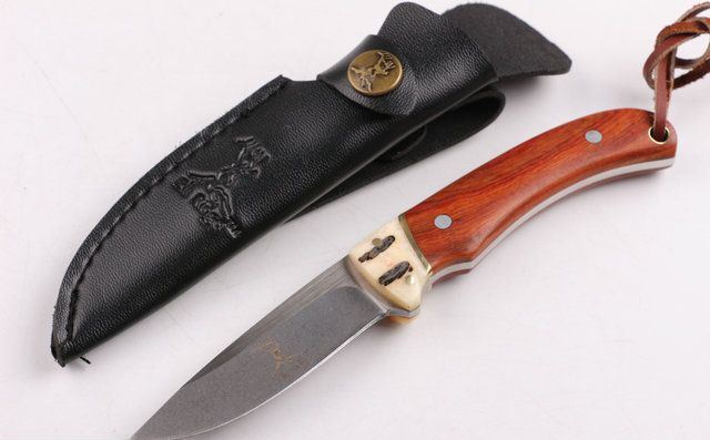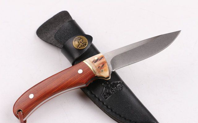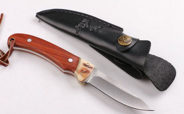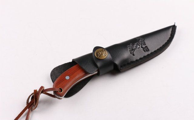 野鹿牌小直刀石洗 全 长: 18cm 刃 长: 8cm 柄 长: 10cm 刃 宽: 2.1cm(最宽处) 硬 度: 55HRC 刃 厚: 0.34cm 柄 材: 刀身贯穿刀柄,两面夹原木 重 量: 139克(含刀套) 刃 材: 440 表 面: 丝光伴故石洗 包 装:原厂纸盒 其 他: 刃口锋利,黑色仿皮刀套,龙骨结构