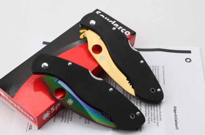 蜘蛛文官小鸟刀(彩钛、土豪金色) 重 量: 170g 类 型: 折刀 型 号: C21GS 全 长: 233 mm 刀 长: 105 mm 闭合长度: 132 mm 刃 材: 9Cr18Mov 硬 度: 59-60HRC,真空热处理 表 面: 缎面处理 刃 厚: 3mm 柄 长: 132 mm 柄 材: G-10 锁 型: 背锁 重 量: 170g