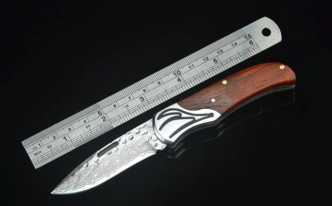 刃材:大马士革钢 硬度:59HRC 全长:15.5CM 刃长:6.3CM 刃厚: 2.9MM 刃宽:2CM (最宽处) 柄长: 8.8CM 柄材: 钢头+红酸枝 净重:75克 毛重:156克 包装:高档磁吸盒、小黑绒布袋 锁定: 无锁