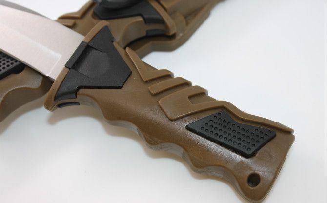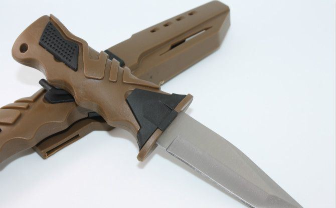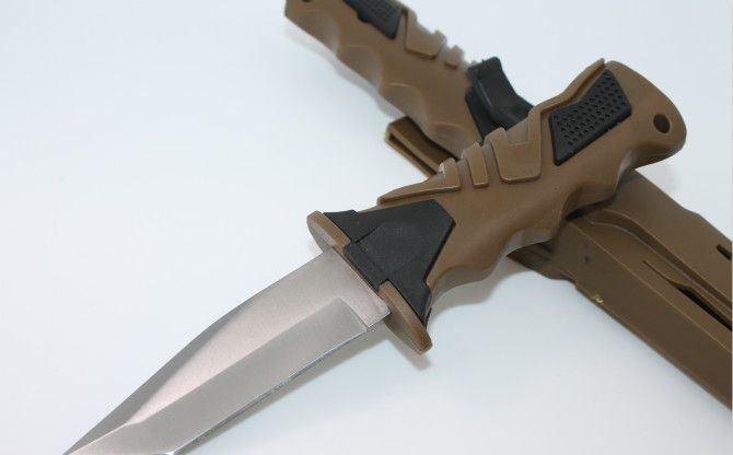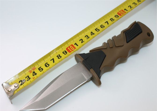 军用潜水平头(灰色) 全 长:21.5 刃 长:9 柄 长: 12.5 刃 宽:2.9(最宽处) 刃 厚:0.4 刃 材:440C 硬 度:56HRC 刀 柄:橡胶 刀 鞘:ABS工程塑料 表 面:砂光 结 构:一体直通刀柄,结构牢固 净 重: 270克(含刀套) 毛 重:400可(含包装物) 包 装:彩盒