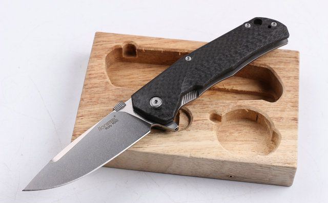 2015款钢狮折刀(D2钢) 总 长:173mm 刃 长:75mm 刃 厚:3.4mm 刃 材:D2 刃 面处理:石洗 手 柄:10mm 手 柄材质;正面碳纤+钛合金 反面:TC4(钛合金) 系 统:滚珠系统 硬 度:58-59° 重 量: 150克 热 处理:真空热处理 包 装:原厂木盒+说明书+配4套小螺丝