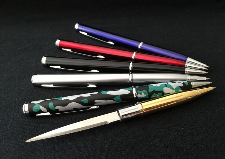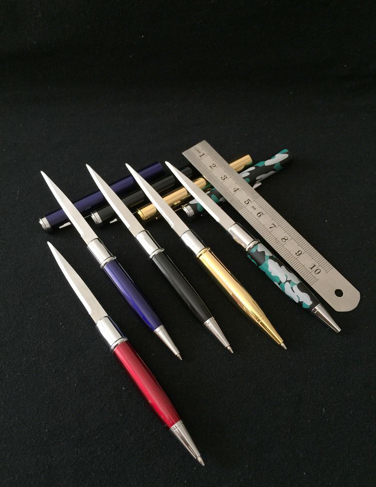 刀和套筒全长: 13.5cm 刀和套筒拆开刀柄长: 8cm 刃 长: 5.5cm 刃 宽: 0.7cm(最宽处) 闭 合:(刀刃放进套筒里) 刃 厚: 0.1cm 筒 粗: 1.2cm 刃 材: 420 表 面: 刀身砂光,手把氧化铝 柄 材: 精铸铝,表面氧化 其 他:内带小刀,书写笔 颜 色:银色、金色、迷彩色、红色、蓝色、黑色(购买注明颜色)