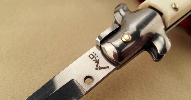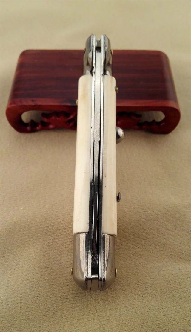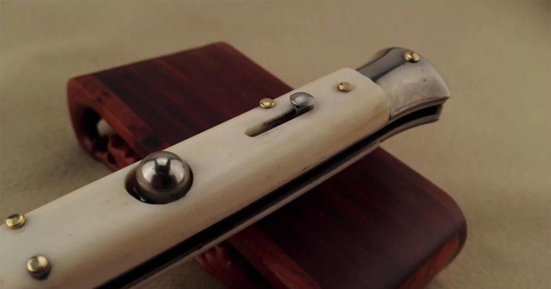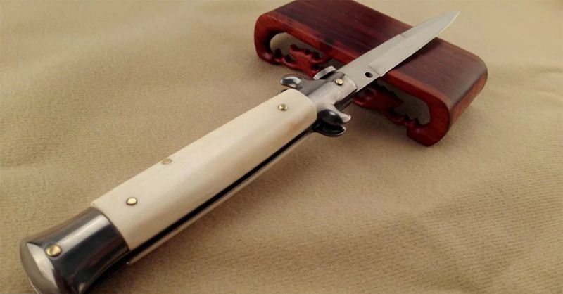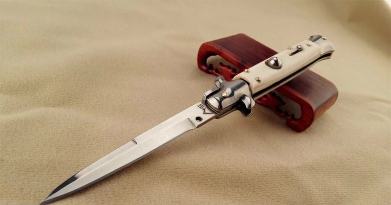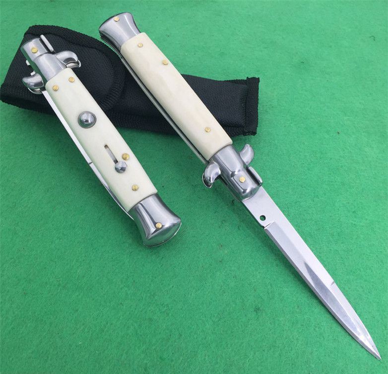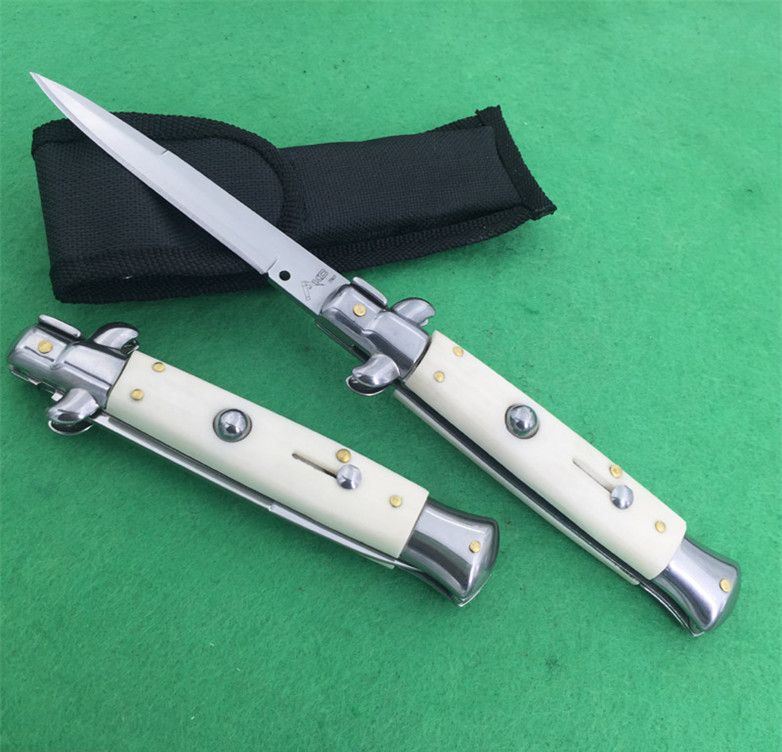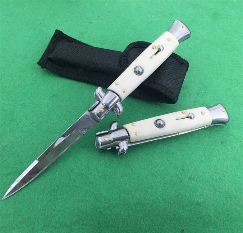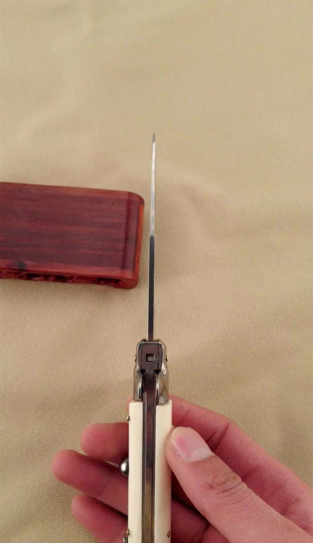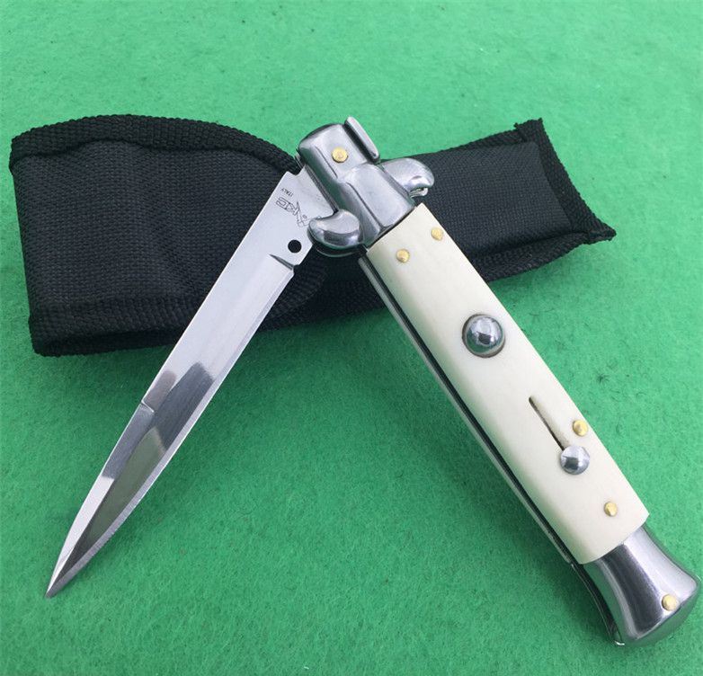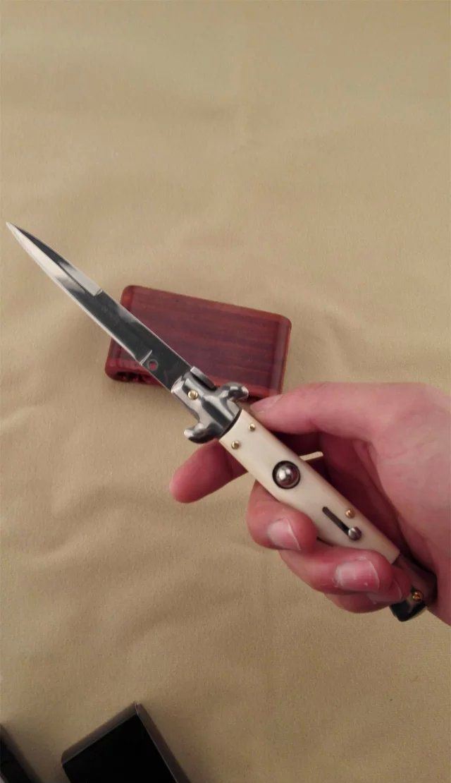 9寸意大利AKC跳刀(牛骨柄) 全 长:23cm 刃 长:10cm 柄 长:13cm 刃 宽:1.3cm(最宽处) 刃 厚:3.0mm 刃 材:9cr18mov 刀 柄:原色牛骨 表 面:镜光 开刀方式:弹簧(带安全开关保险) 重 量:140克