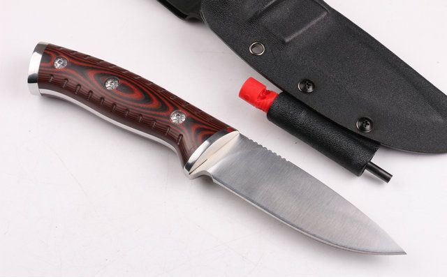 巴克路马求生直刀 全 长:230mm 刃 长:110mm 柄 长:120mm 刃 宽:32mm 刃 厚:4.2mm 刃 材: 7CR17MOV钢 重 量:600g(含包装) 硬 度:59HRC 表 面:沙光 柄 材:天然彩木 锁 型:定锁 其 他:K鞘+哨子和打火棒 包 装:高级礼品盒