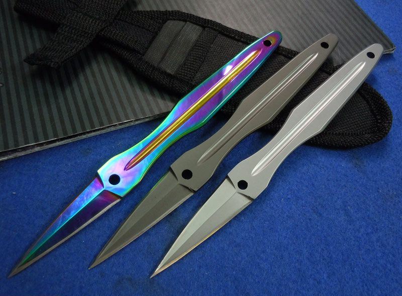 全长:16.2CM 刃长:5CM 柄长:11.5CM 厚度:0.4CM 材料:3铬13不锈钢 表面:钛面,彩钛,灰钛 三色剑鱼飞镖,一体全钢扎制,数控溜边,手感一流,便携