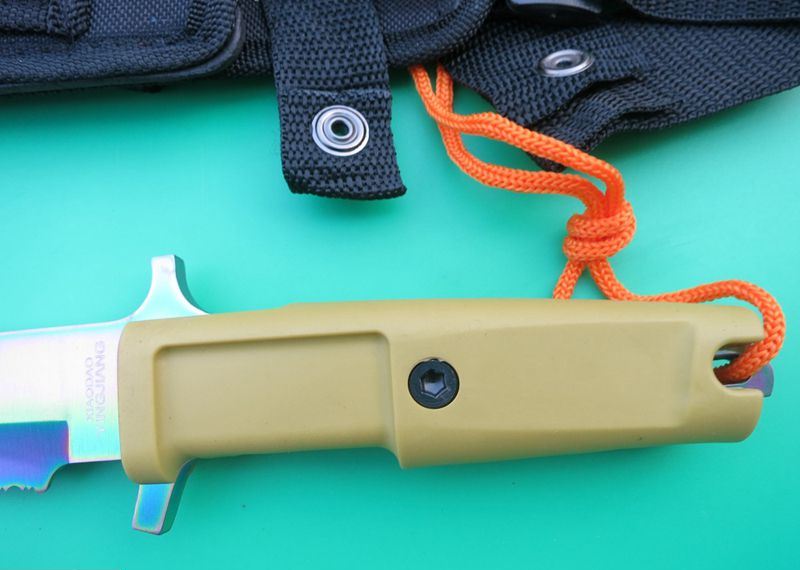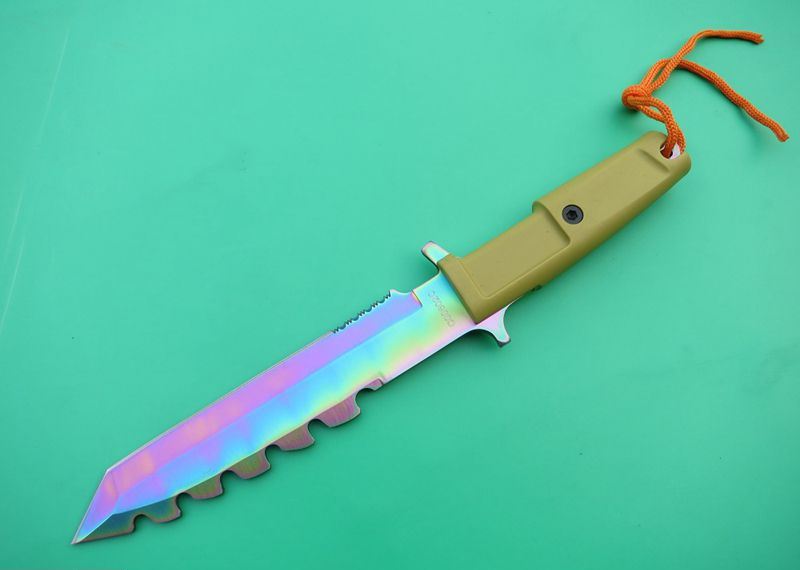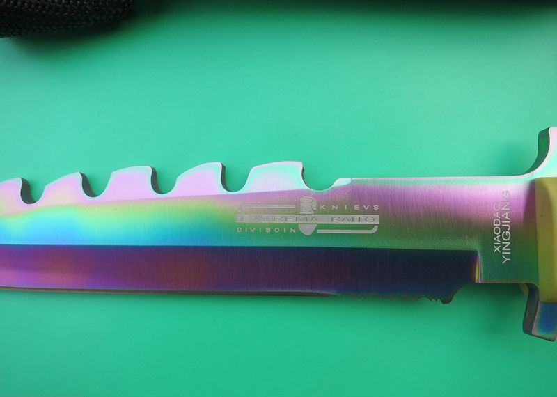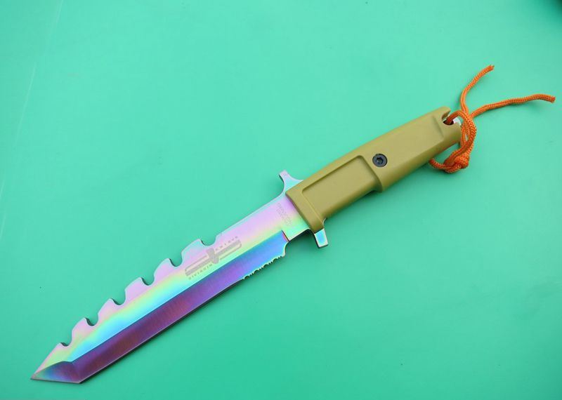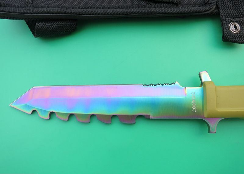 极端武力捕鲸叉彩钛版 全 长: 32.5cm 刃 长: 19cm 刃 厚: 6mm 刃 材: 5CR15MOV 硬 度: 58HRC 重 量: 620克 表 面: 彩钛版 柄 材: 橡塑 刀 鞘: 尼龙 其 它: 配牛皮纸盒子