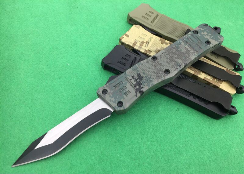 伤齿龙A161反恐精英冲锋全刃跳刀 全长:23.5厘米 刃长:9.5厘米 柄长:14.5厘米 刃厚:0.3厘米 净重:148克 带包装重量:440克 颜色:军绿迷彩、黑色、黄迷彩、军绿色柄