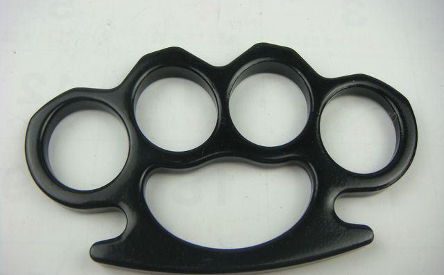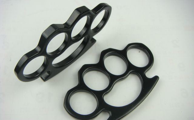 防身黑色拳套 宽度:11.2cm 高度:6.6cm 厚度:0.8cm 单孔内径:2.5cm 表面处理:镀黑色 材料:精铸铝 重量:100克