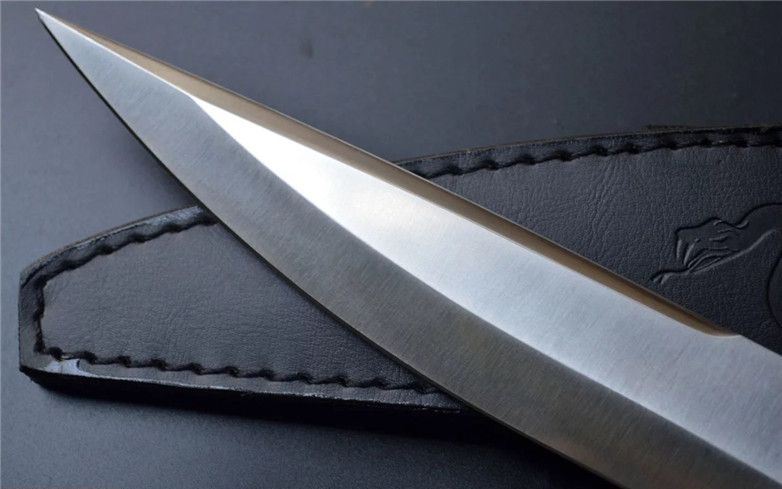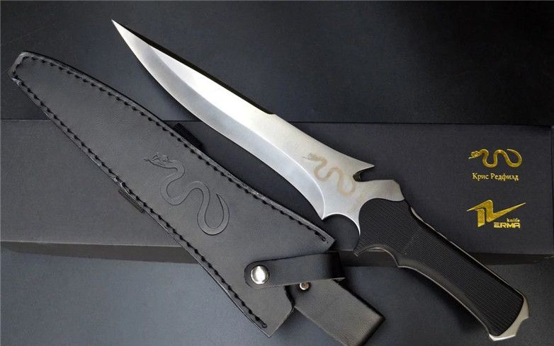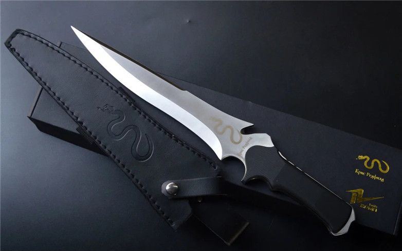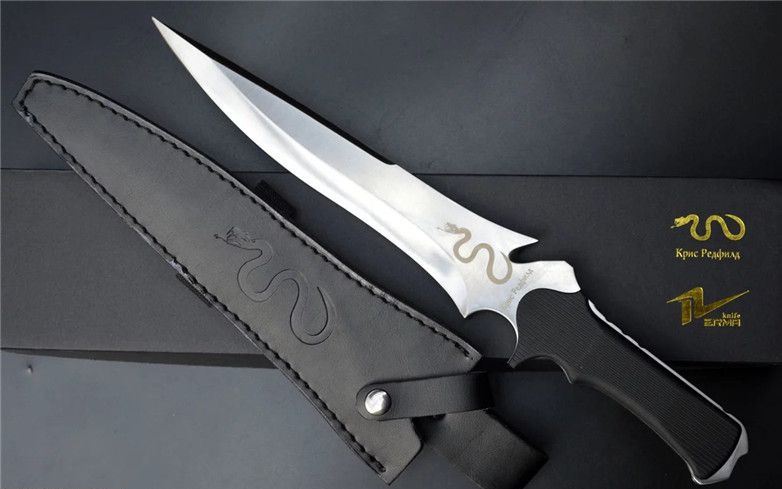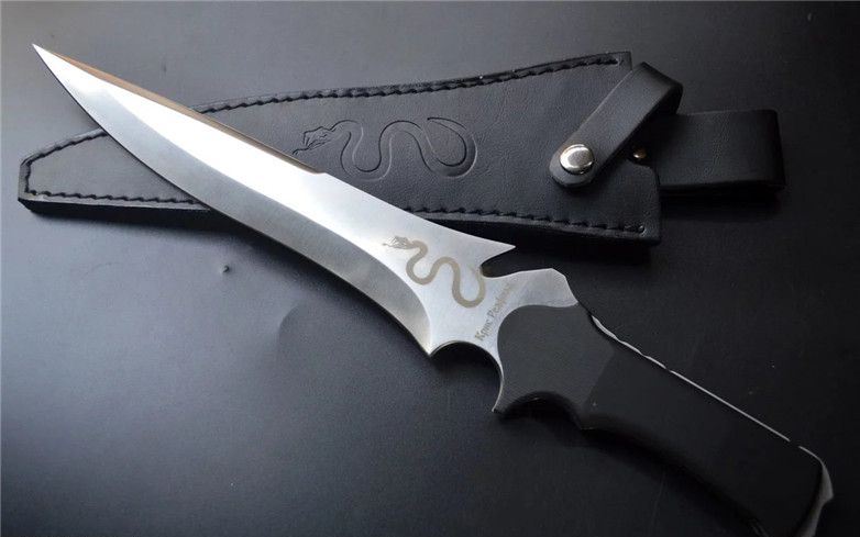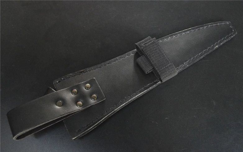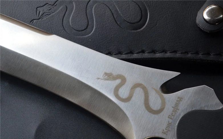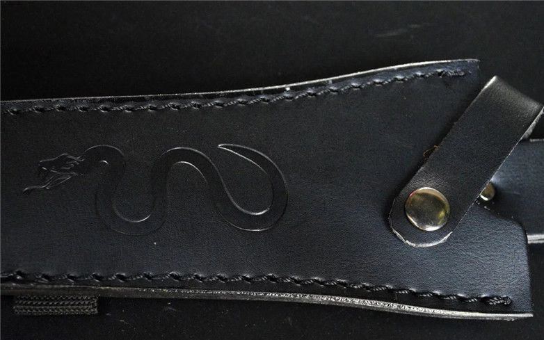包装: 纯手工缝制头层可横带的牛皮套(刀套表面印有眼镜蛇图案)