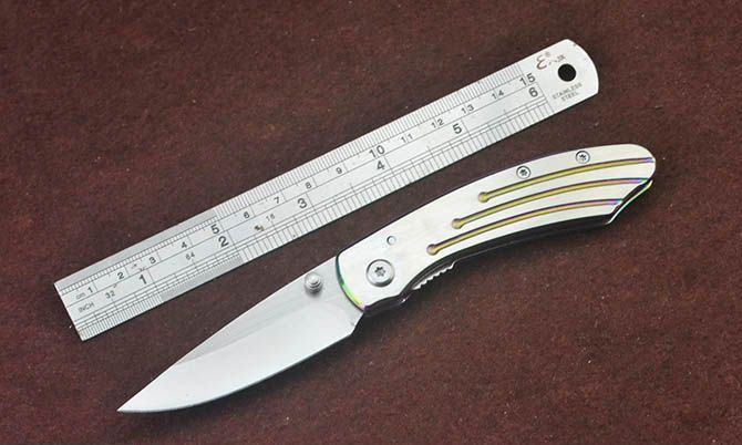 全 长:16.5cm 刃 长:6.8cm 柄 长:9.5cm 刃 宽:2.2cm 刃 厚:2.2mm 刃 材:3Cr13Mov 重 量:117g(含包装) 硬 度:56HRC 表 面:拉丝 柄 材:幻彩轮廓边+全钢拉丝面 锁 型:线锁 包 装:彩盒 备 注:带腰夹